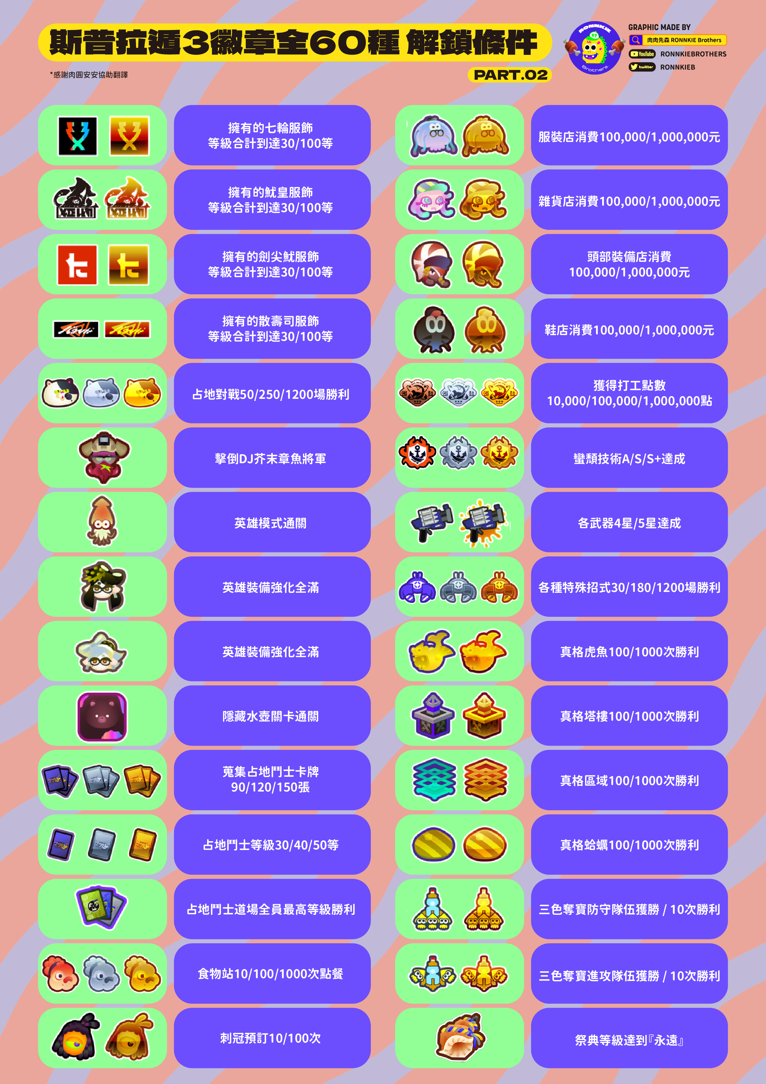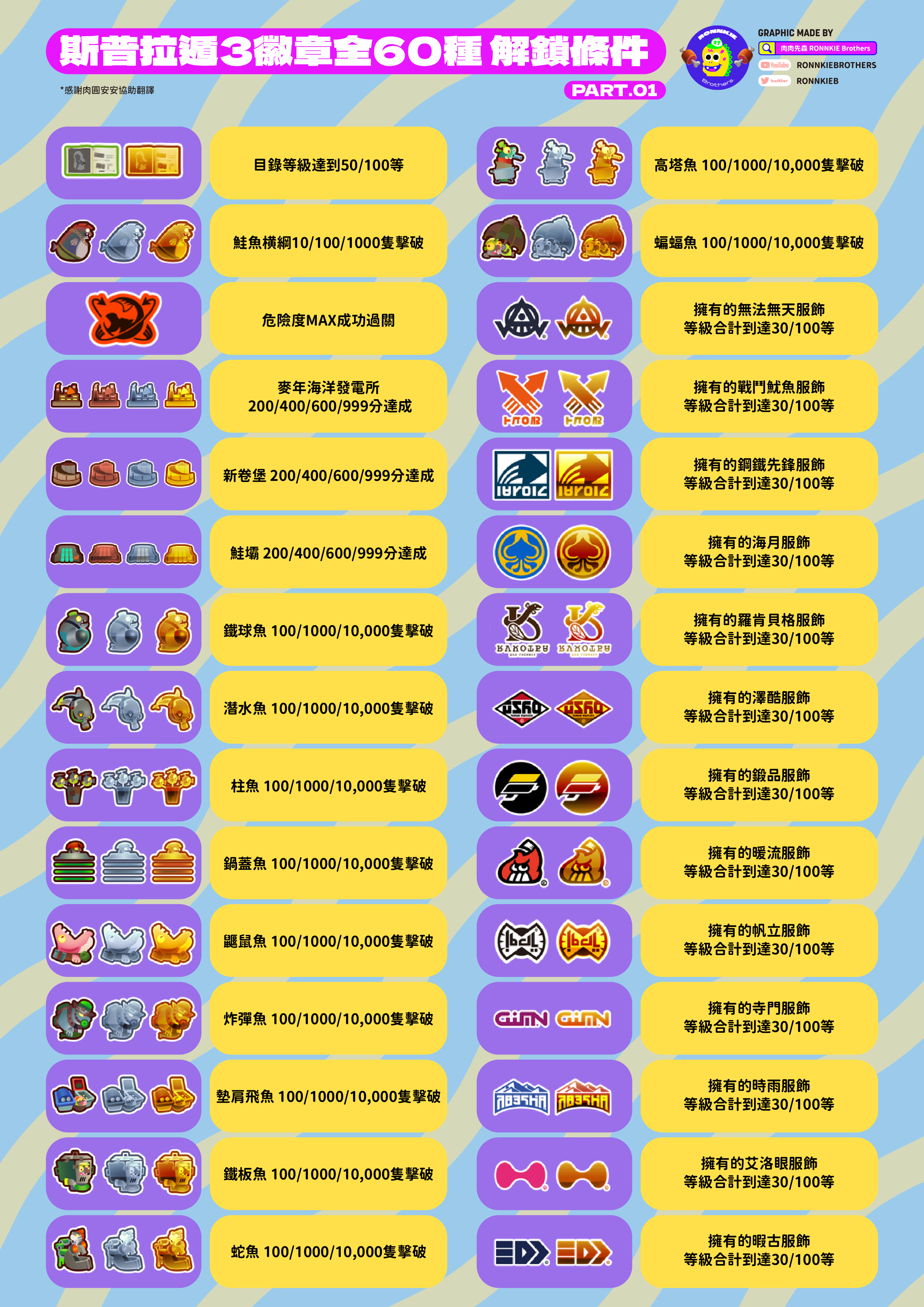 【斯普拉肉知 EP.03】 徽章貼紙全60種!你還在羨慕別人有的貼紙你沒有嗎?解鎖條件表免費下載!趕快去蒐集R! 【漆彈大作戰3 SPLATOON3】