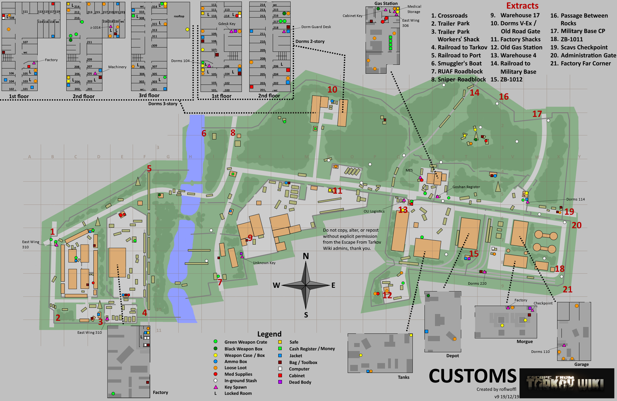 Customs Map by RoflWoffl https://gamepedia.cursecdn.com/escapefromtarkov_gamepedia/4/4f/Customs-2d-by-ROFLWOFFL.png?version=08ee10bfec88e479c0d73374770ef9c7