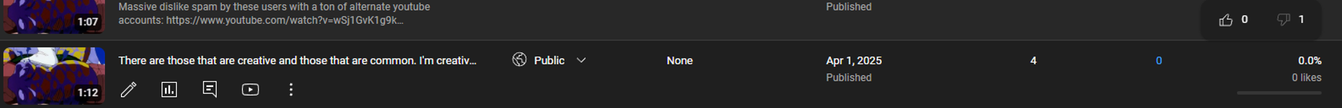 Massive dislike spam by these users with a ton of alternate youtube accounts: