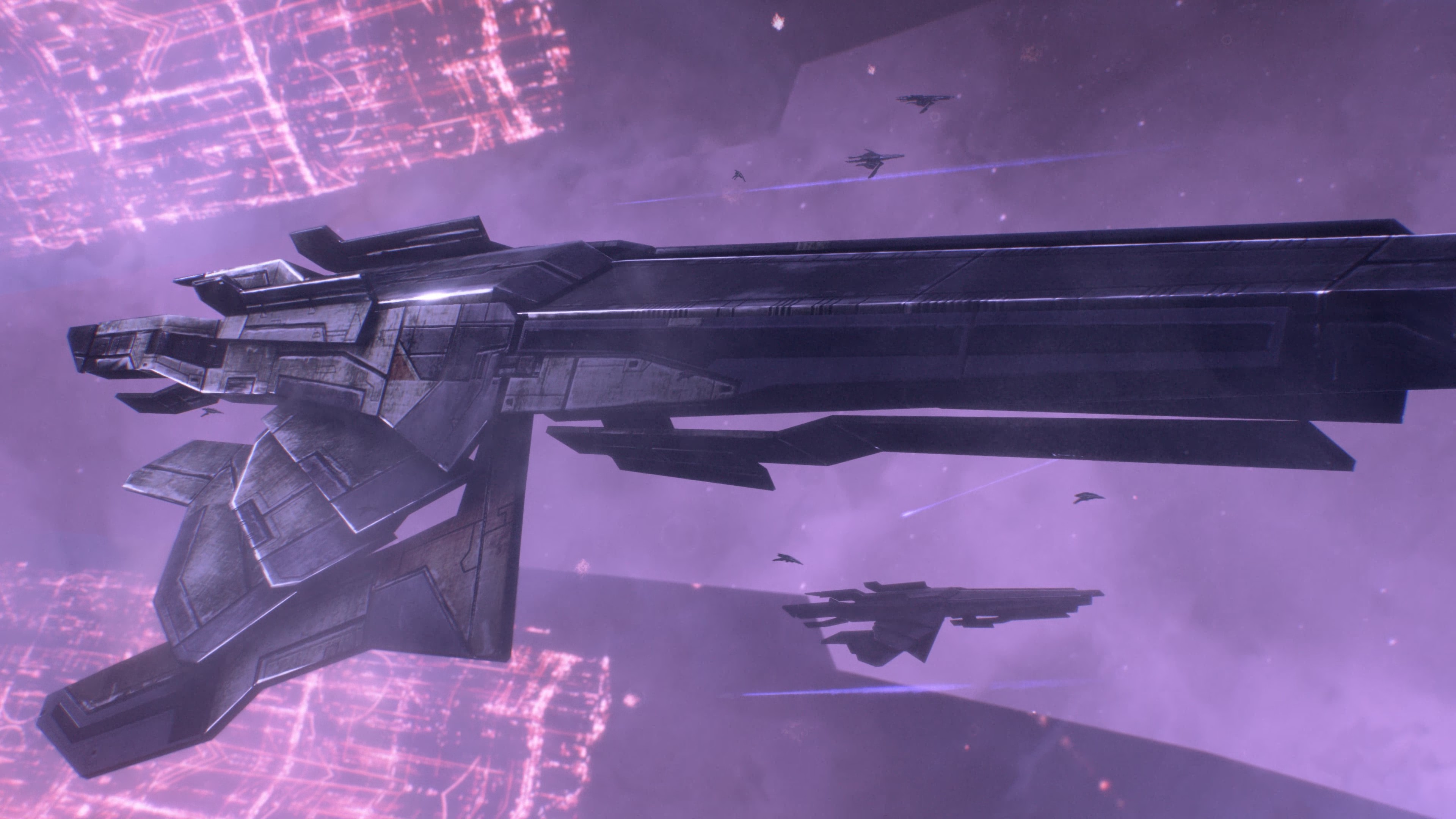 Turian Ship: https://vignette.wikia.nocookie.net/masseffect/images/f/f6/Turian_cruiser_01.jpg/revision/latest?cb=20100109160505